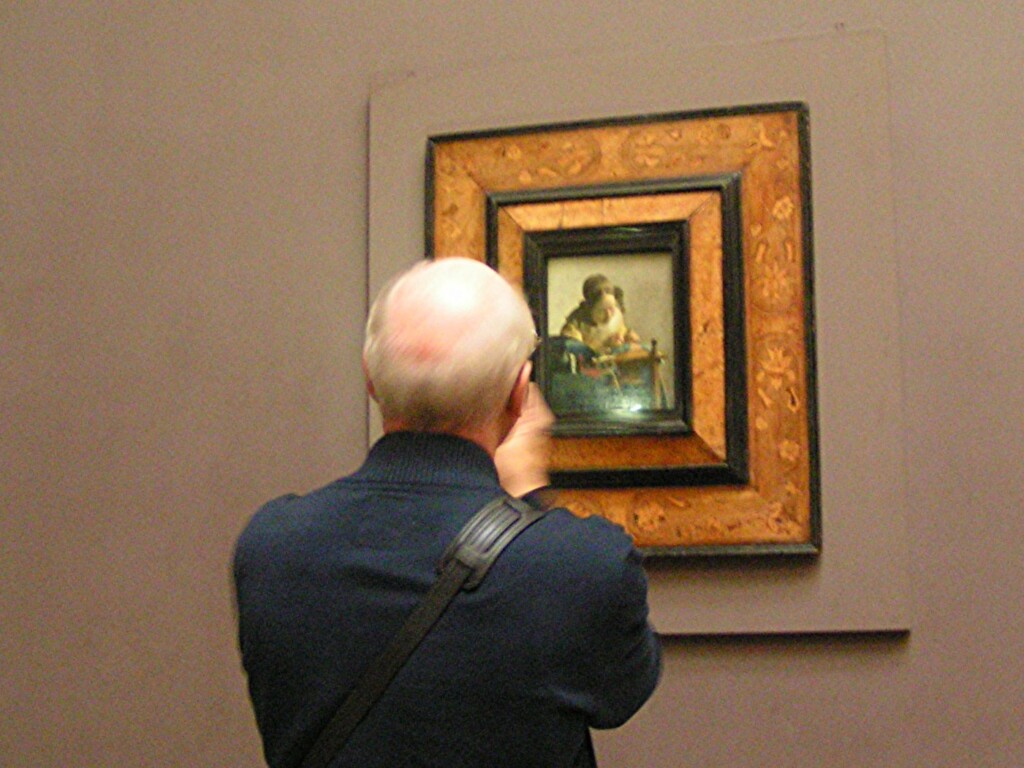 ところが、ルーヴルにあるオランダの画家フェルメールの『レースを編む少女』は横20.5cm、縦23.9cmです。A4のコピー紙よりも小さい大きさです。『天文学者』は縦50cm、横45cmです。『レースを編む少女』の絵は、とりわけ小さい絵といえます。絵の大きさを示す単位は、大きな絵はm単位で示せますが、小さな絵になるとcmにしたほうが分かりやすくなります。