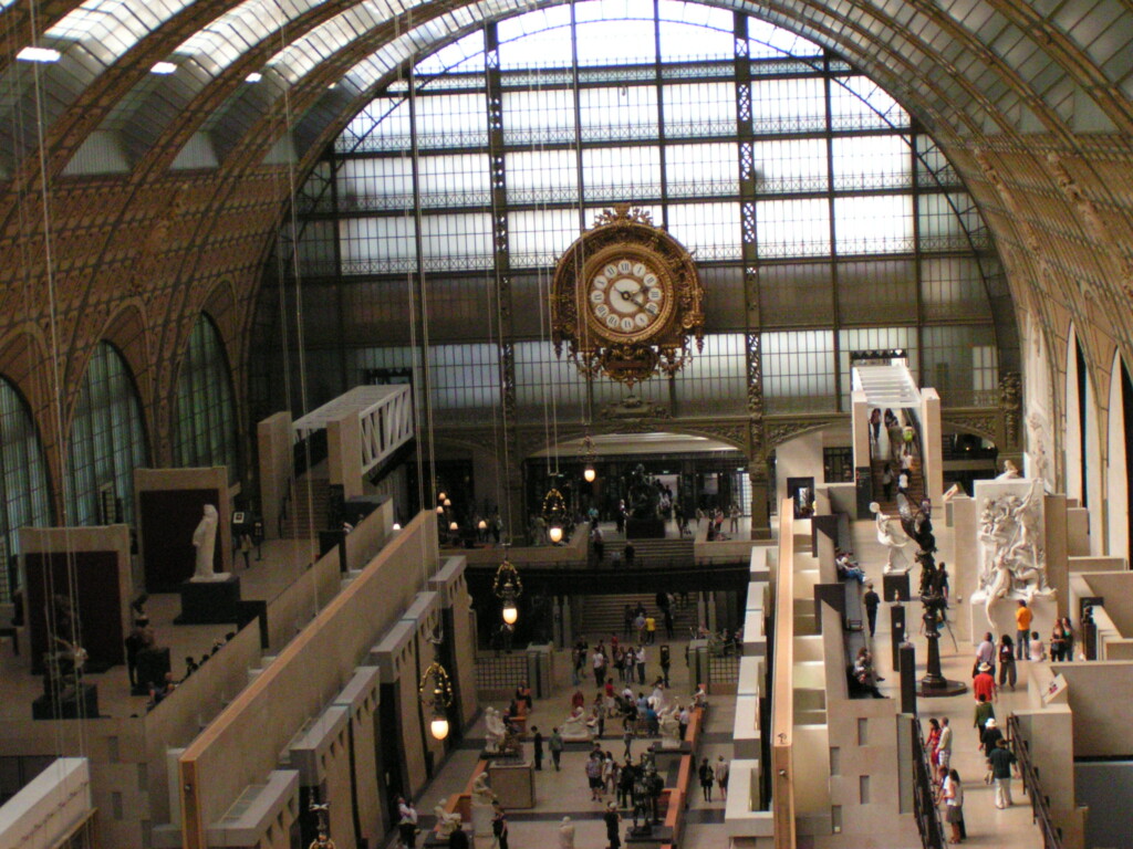 「オルセー駅」はパリにある他の駅とは違ってパリ中心部に新しくできた駅で、1900年の万国博覧会に合わせて開業しました。セーヌ川に面したところにあり、万博会場へのアクセスのために作られた駅でした。しかし、オステルリッツ駅からオルセー駅までの間は地下を通るため、煙害を避けるため、電気機関車が使用されました。というわけで蒸気機関車の乗り入れがないパリ唯一の駅でした。しかし、オステルリッツ駅で蒸気機関車から電気機関車への付け替え作業が必要なこと、他の駅に比べ狭く、長い編成の列車が利用できないこともあり、1939年には近距離専用の駅になりました。