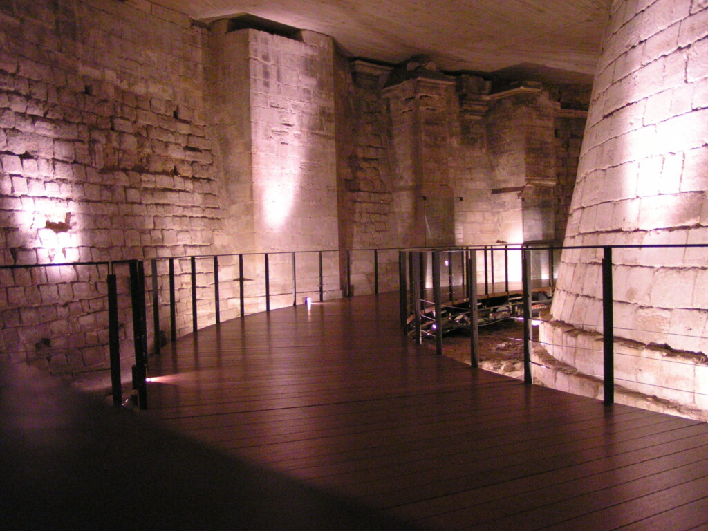 また、工事の一環として、城砦として建設された昔のルーヴルが発掘されました。その時の遺構と発掘されたものの一部が現在、シュリー翼の地下で見られます。